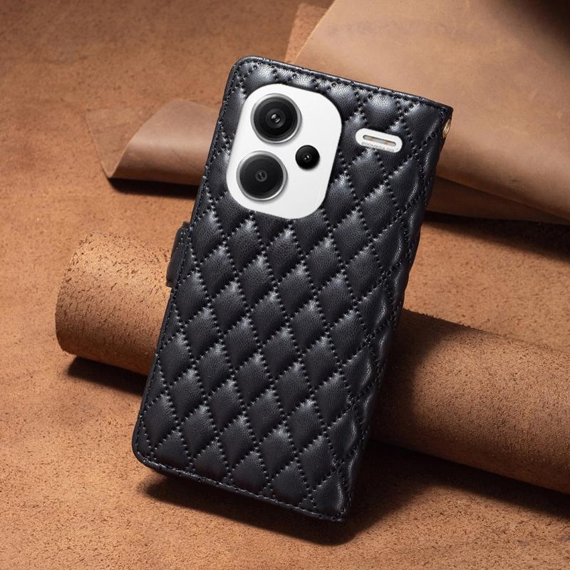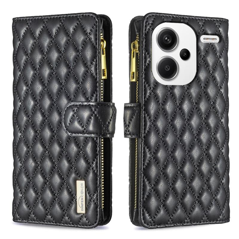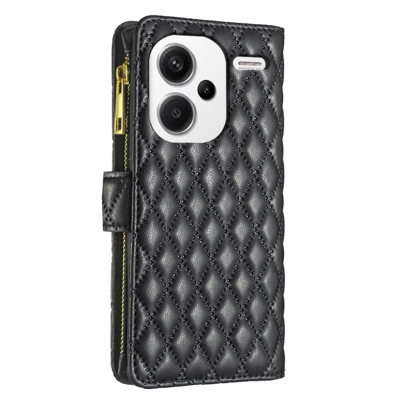 For Xiaomi Redmi Note 13 Pro+ 5G Diamond Lattice Zipper Wallet Leather Flip Phone Case(Black)
