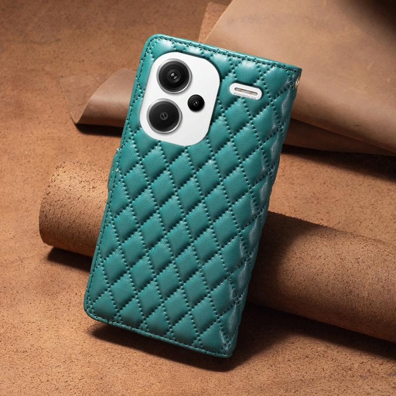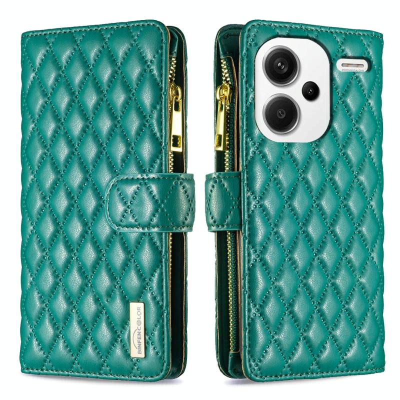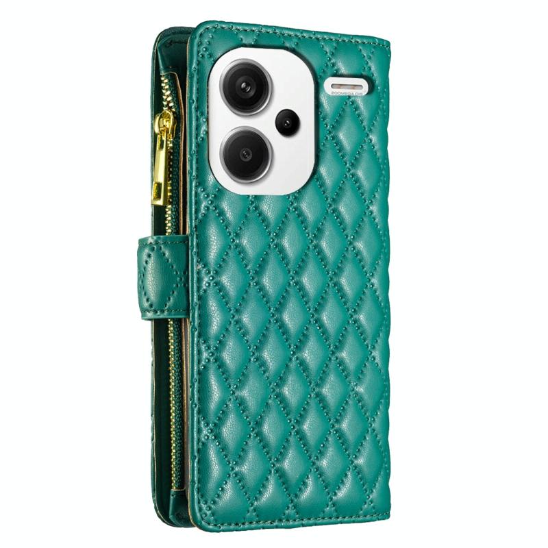 For Xiaomi Redmi Note 13 Pro+ 5G Diamond Lattice Zipper Wallet Leather Flip Phone Case(Green)