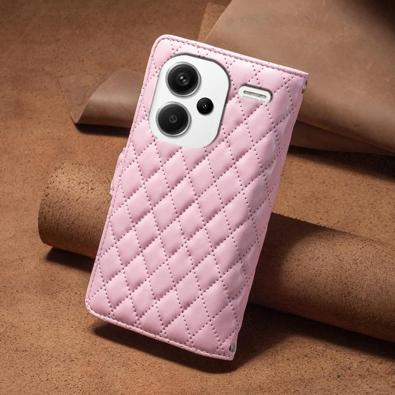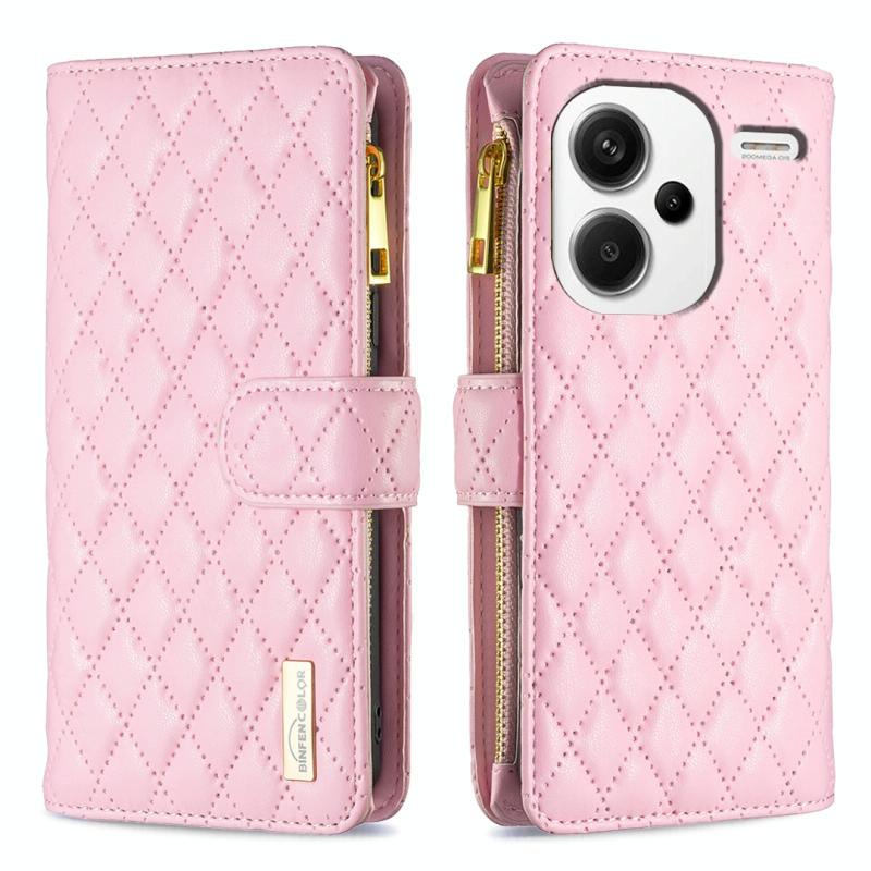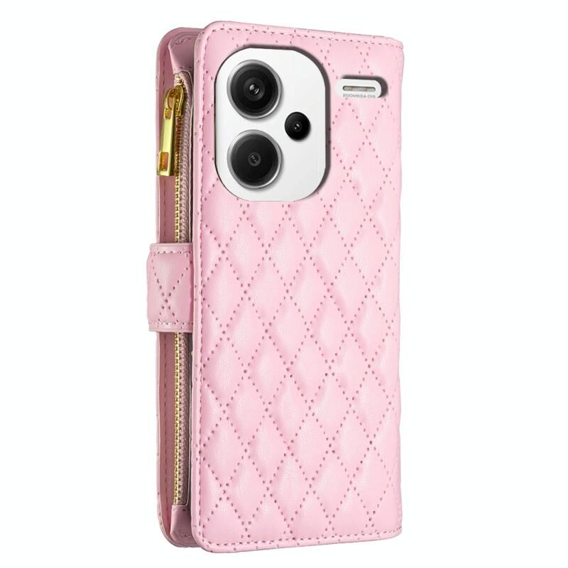 For Xiaomi Redmi Note 13 Pro+ 5G Diamond Lattice Zipper Wallet Leather Flip Phone Case(Pink)