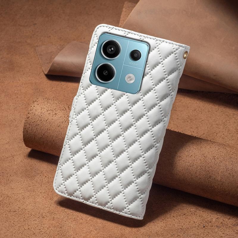 For Xiaomi Redmi Note 13 Pro 5G Diamond Lattice Zipper Wallet Leather Flip Phone Case(White)
