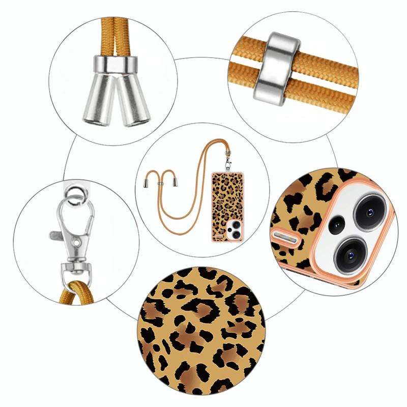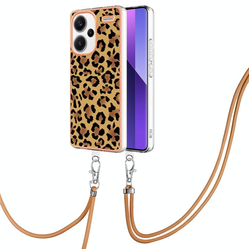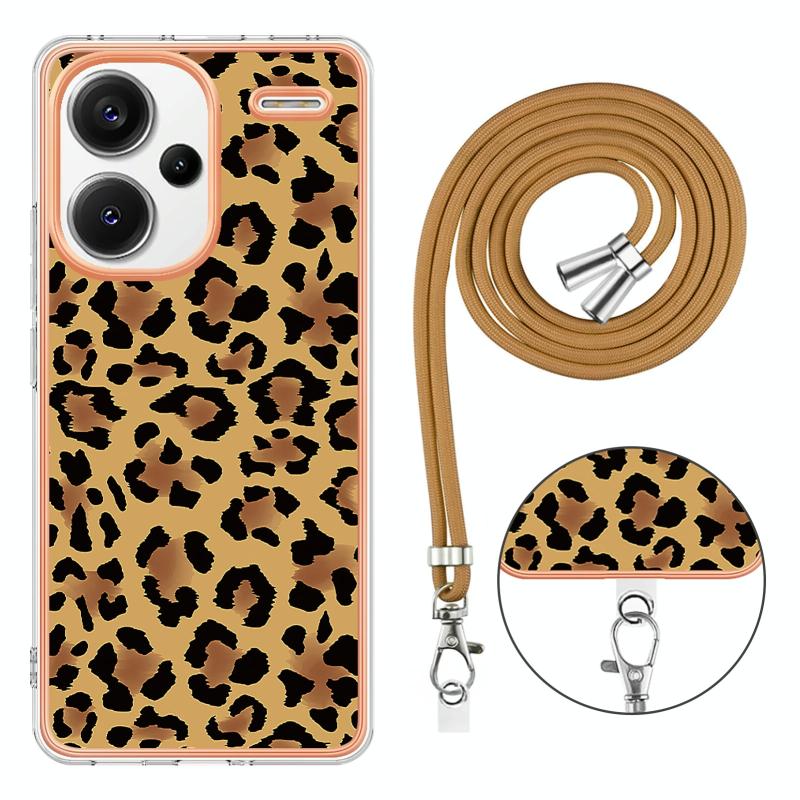 Θήκη Xiaomi Redmi Note 13 Pro+ 5G με Λουρί και Επιμετάλλωση (Σχέδιο Λεοπάρ)