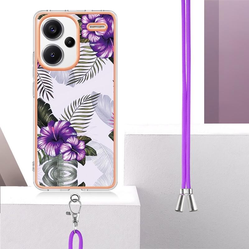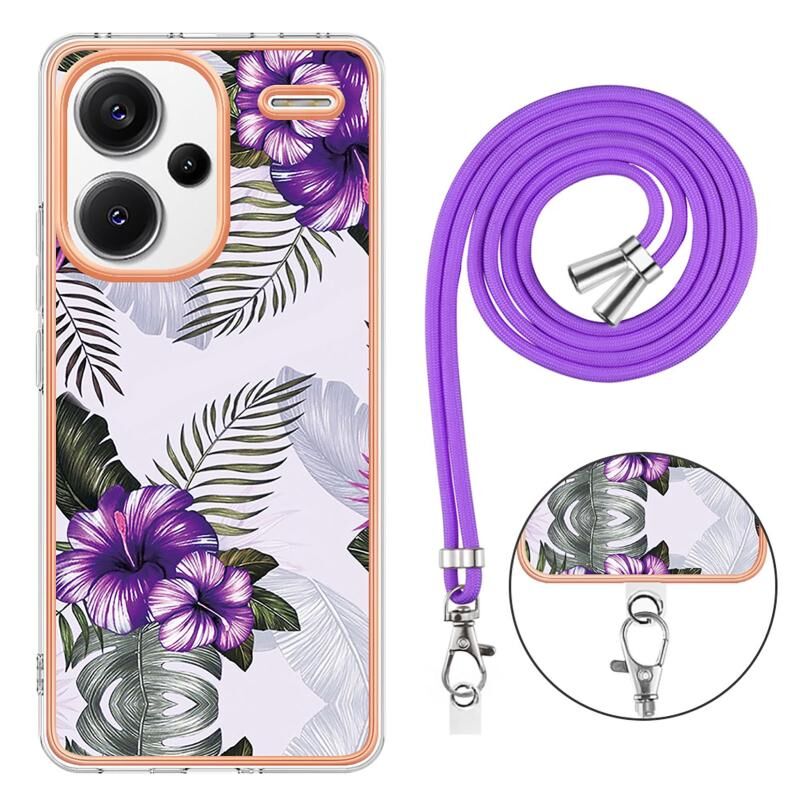 Θήκη κινητού τηλεφώνου για Xiaomi Redmi Note 13 Pro+ 5G Electroplating IMD TPU με κορδόνι (Ροζ Λέπια)