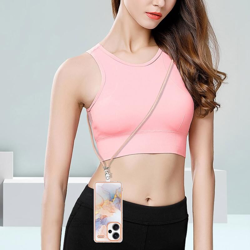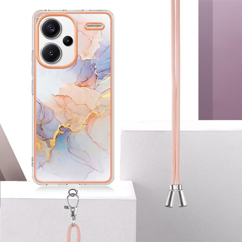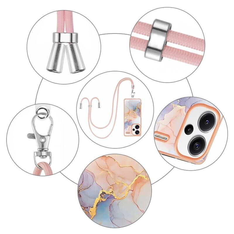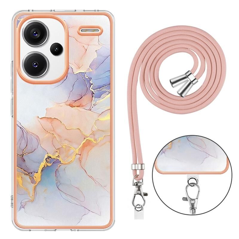 Θήκη κινητού τηλεφώνου για Xiaomi Redmi Note 13 Pro+ 5G Electroplating IMD TPU με κορδόνι (Ροζ Λέπια)