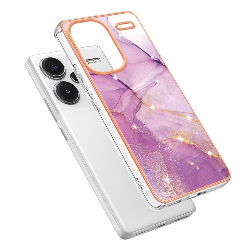 For Xiaomi Redmi Note 13 Pro+ 5G Electroplating Marble Dual-side IMD Phone Case(Purple 001)