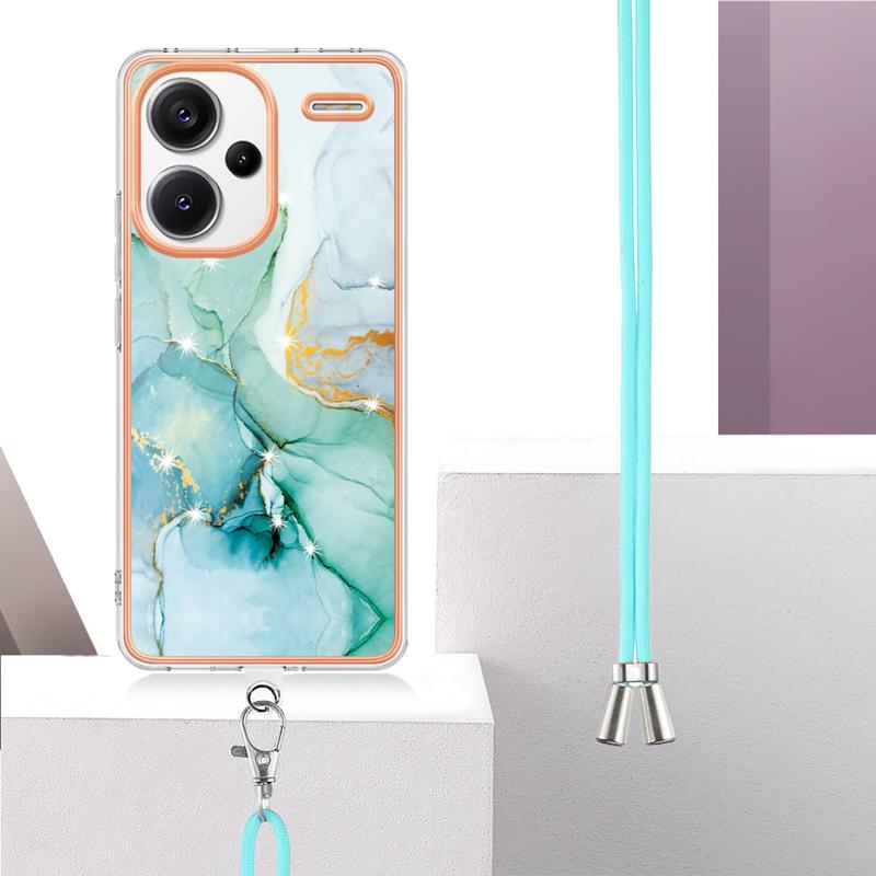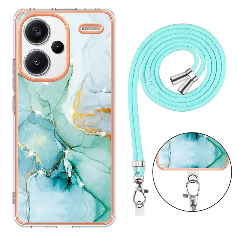 For Xiaomi Redmi Note 13 Pro+ 5G Electroplating Marble Dual-side IMD Phone Case with Lanyard(Green 003)