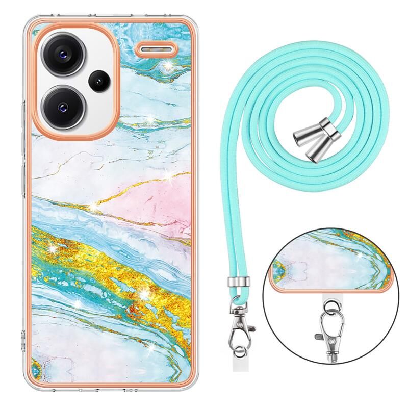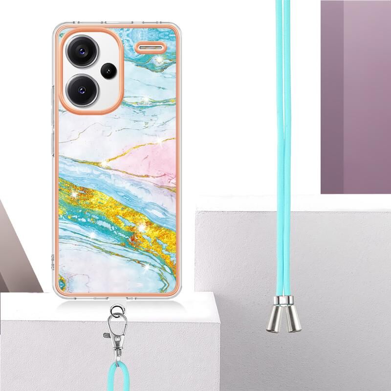 Θήκη τηλεφώνου για Xiaomi Redmi Note 13 Pro+ 5G με γαλβανισμό, σχέδιο μάρμαρου, διπλής όψης IMD με κορδόνι (Μωβ 001)