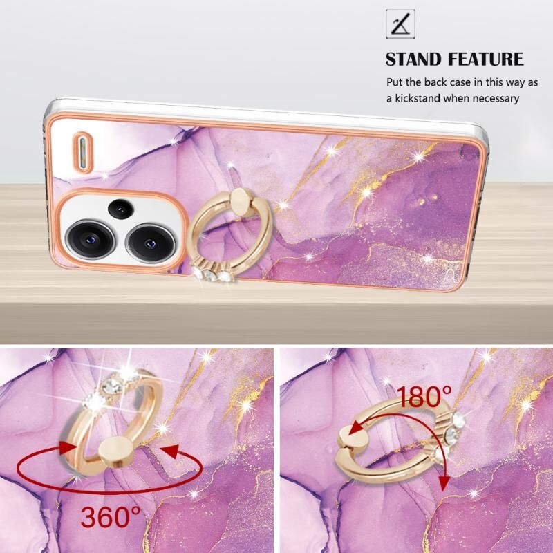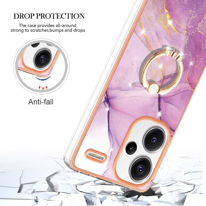 For Xiaomi Redmi Note 13 Pro+ 5G Electroplating Marble IMD TPU Phone Case with Ring Holder(Purple 001)