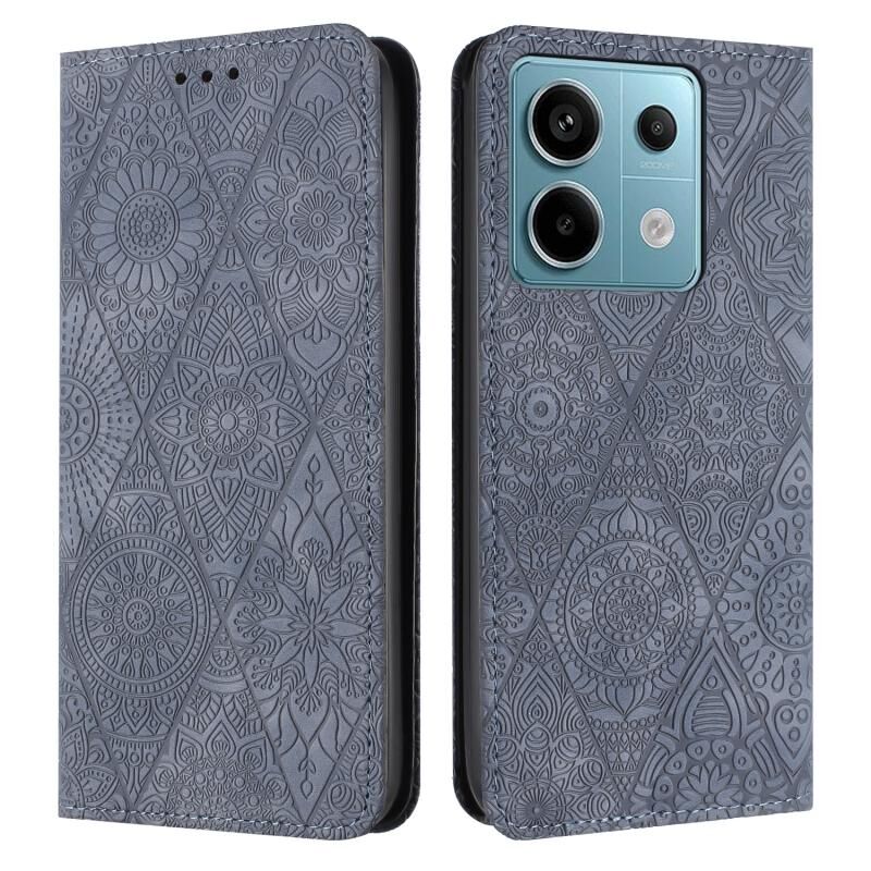 Θήκη τηλεφώνου από δέρμα με απορρόφηση και εθνοτικό ανάγλυφο για Xiaomi Redmi Note 13 Pro 5G (Μωβ)