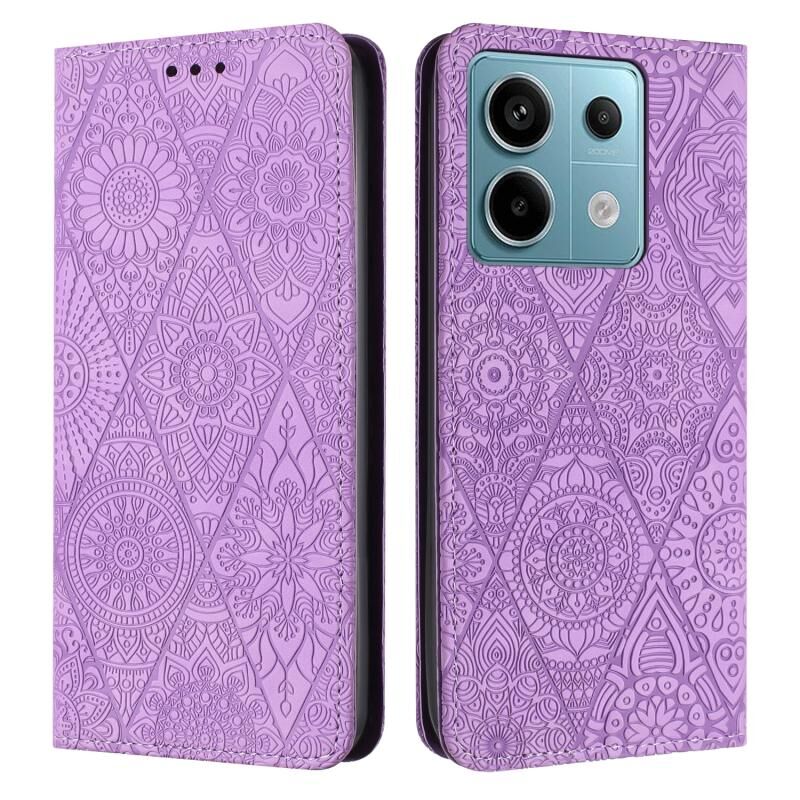 Θήκη τηλεφώνου από δέρμα με απορρόφηση και εθνοτικό ανάγλυφο για Xiaomi Redmi Note 13 Pro 5G (Μωβ)