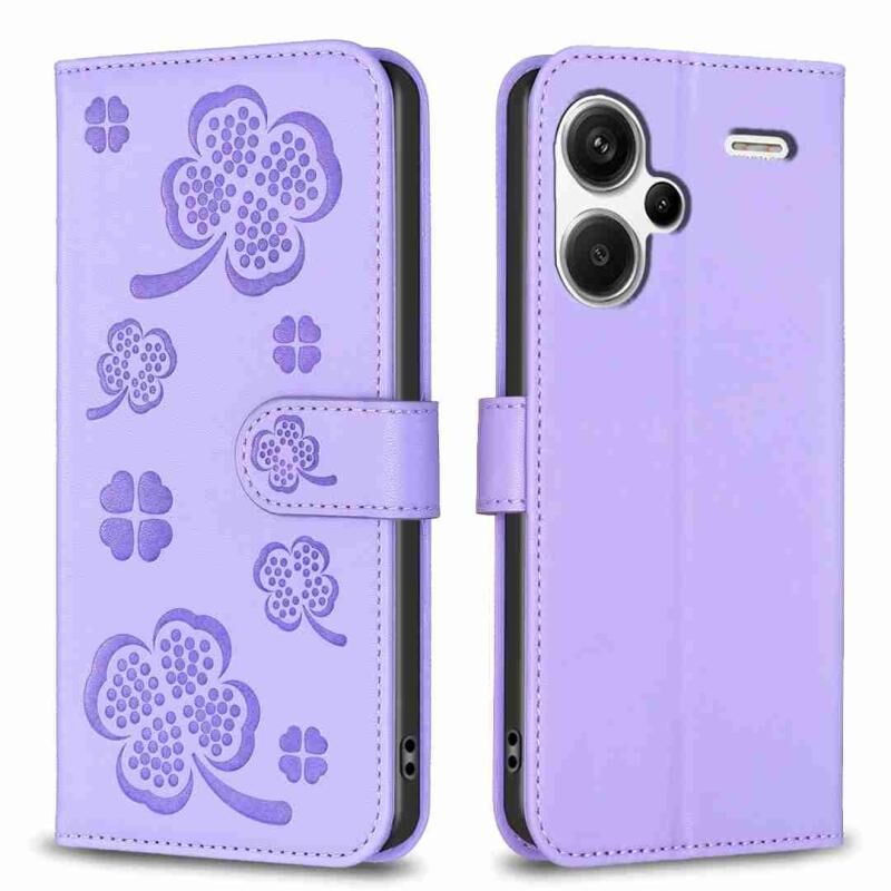 Για Xiaomi Redmi Note 13 Pro + 5G τετράφυλλο ανάγλυφη δερμάτινη θήκη τηλεφώνου (Μωβ)
