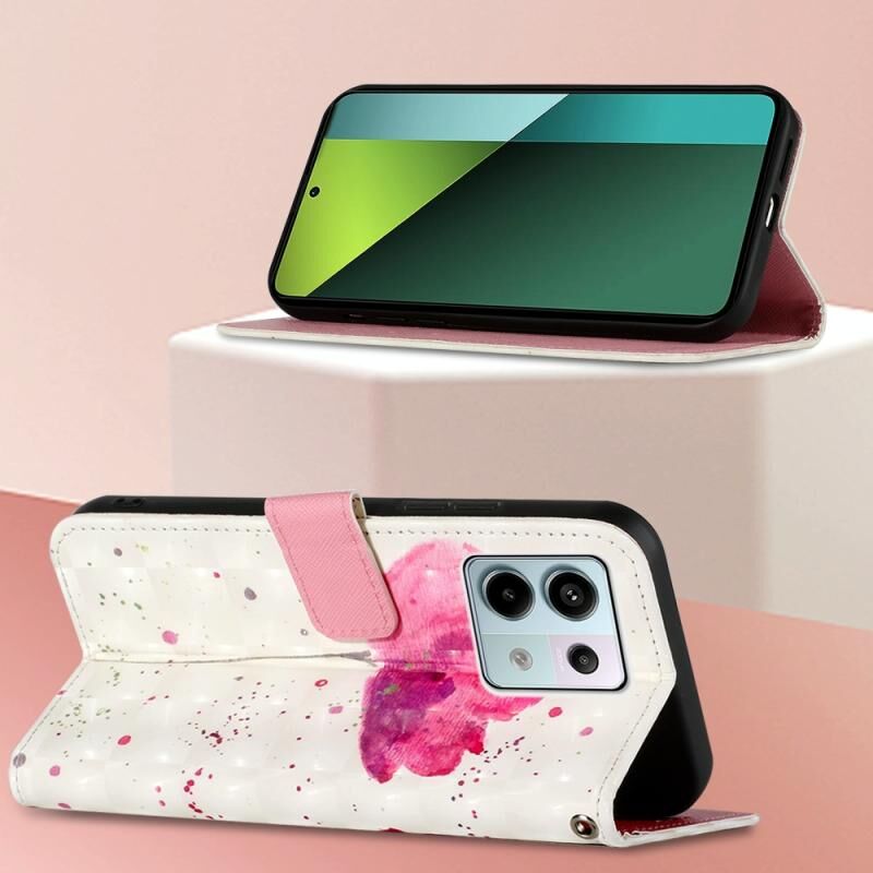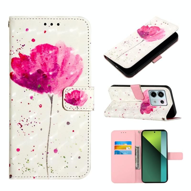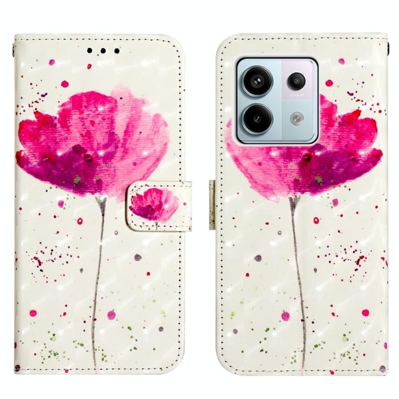 Θήκη τηλεφώνου δερμάτινη με οριζόντιο άνοιγμα και τρισδιάστατη ζωγραφική για Xiaomi Redmi Note 13 Pro 5G Global (Λουλούδι)