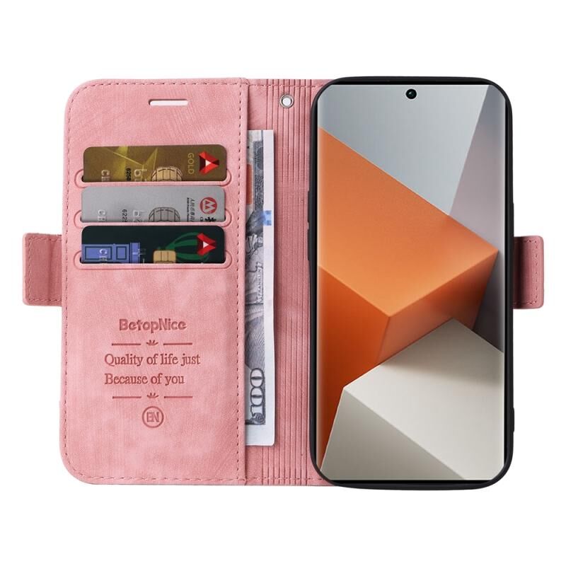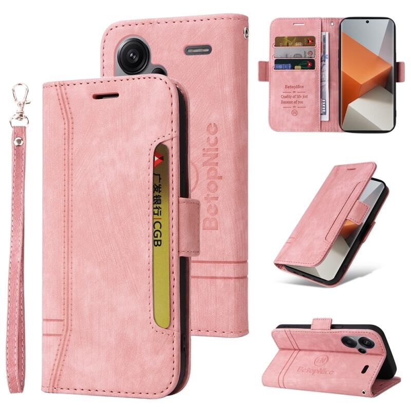 Για Xiaomi Redmi Note 13 Pro + 5G Global BETOPNICE Διπλής όψης πόρπη δερμάτινη θήκη τηλεφώνου (ροζ) (BETOPNICE)