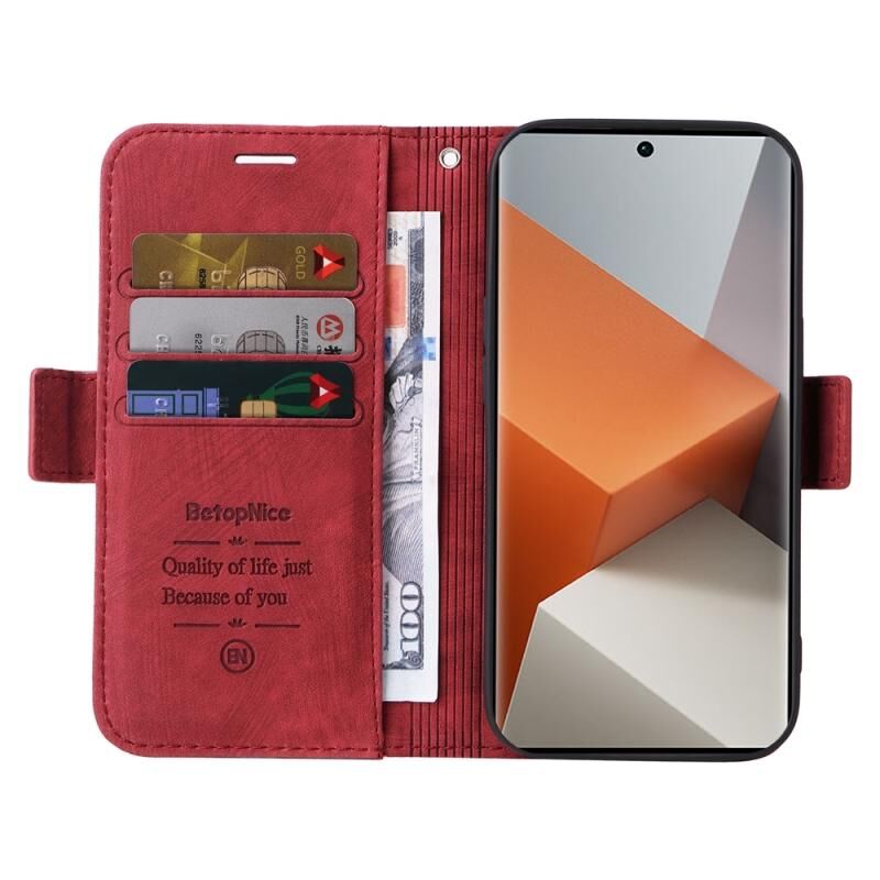 Για Xiaomi Redmi Note 13 Pro + 5G Global BETOPNICE Διπλής όψης πόρπη Δερμάτινη θήκη τηλεφώνου (κόκκινο) (BETOPNICE)