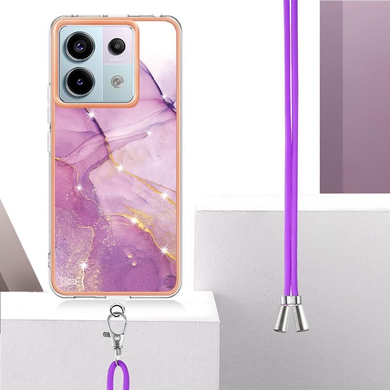 Θήκη τηλεφώνου Xiaomi Redmi Note 13 Pro 5G Global με ηλεκτρολυτική μαρμάρινη επένδυση IMD διπλής όψης με κορδόνι (Μωβ 001)