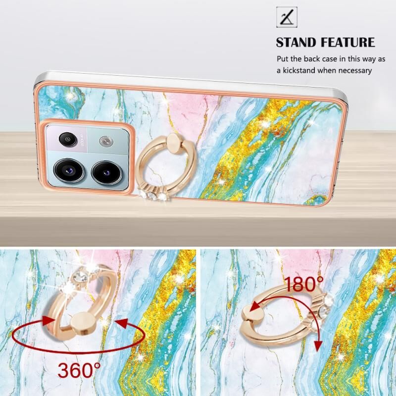 Θήκη κινητού τηλεφώνου Xiaomi Redmi Note 13 Pro 5G Global Electroplating Marble IMD TPU με δακτύλιο στήριξης (Λευκό 006)