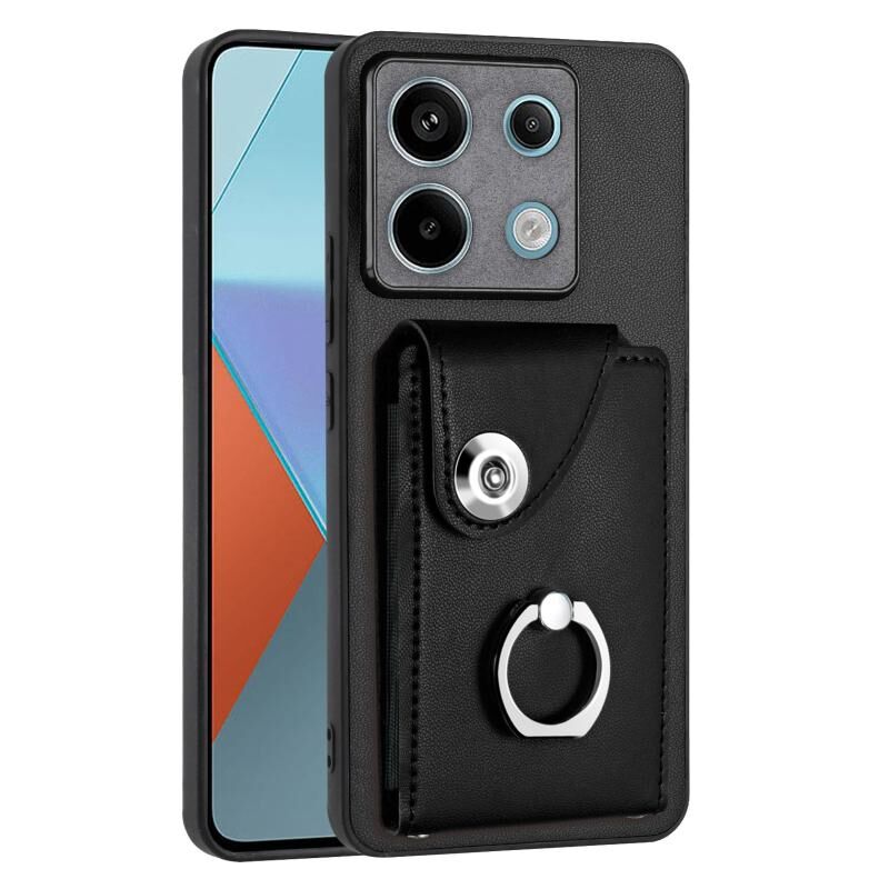 Για Xiaomi Redmi Σημείωση 13 Pro 5G Παγκόσμια Οργανική κάρτα τσάντα δαχτυλίδι κάτοχος PU υπόθεση τηλεφώνου (μαύρο)