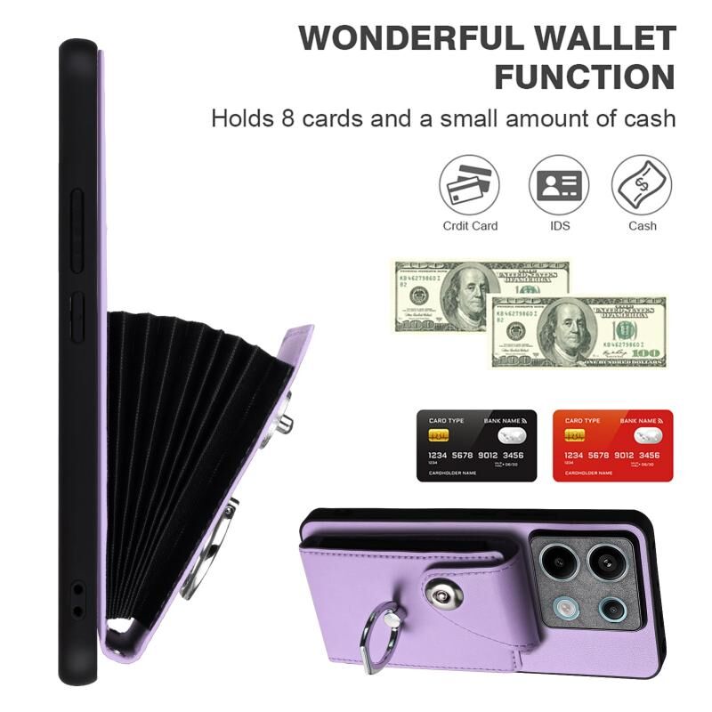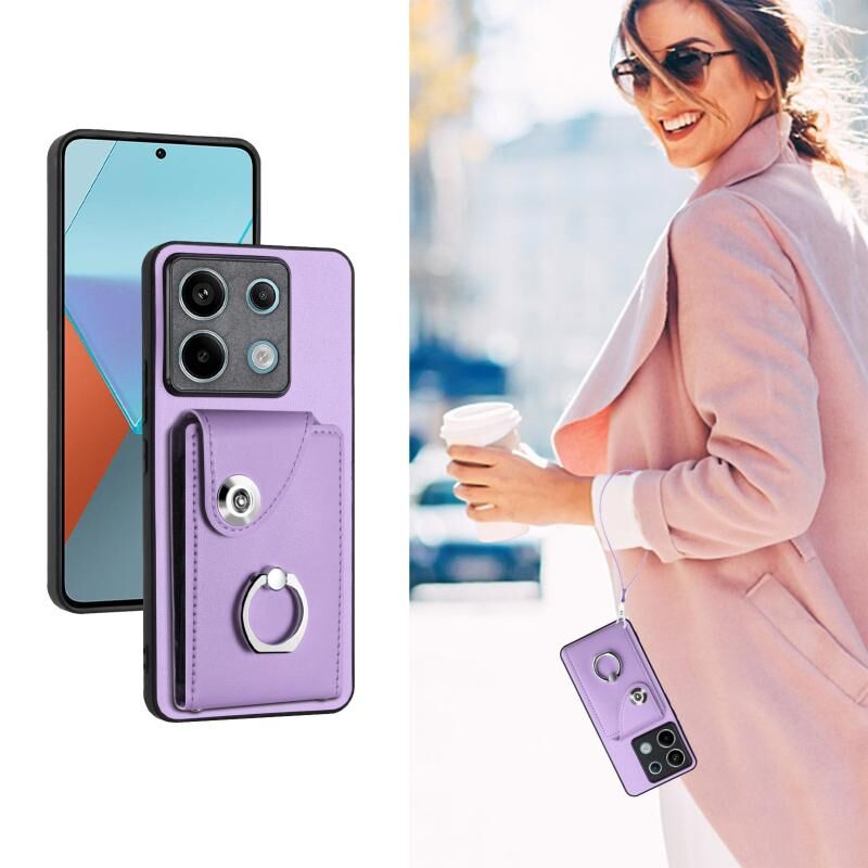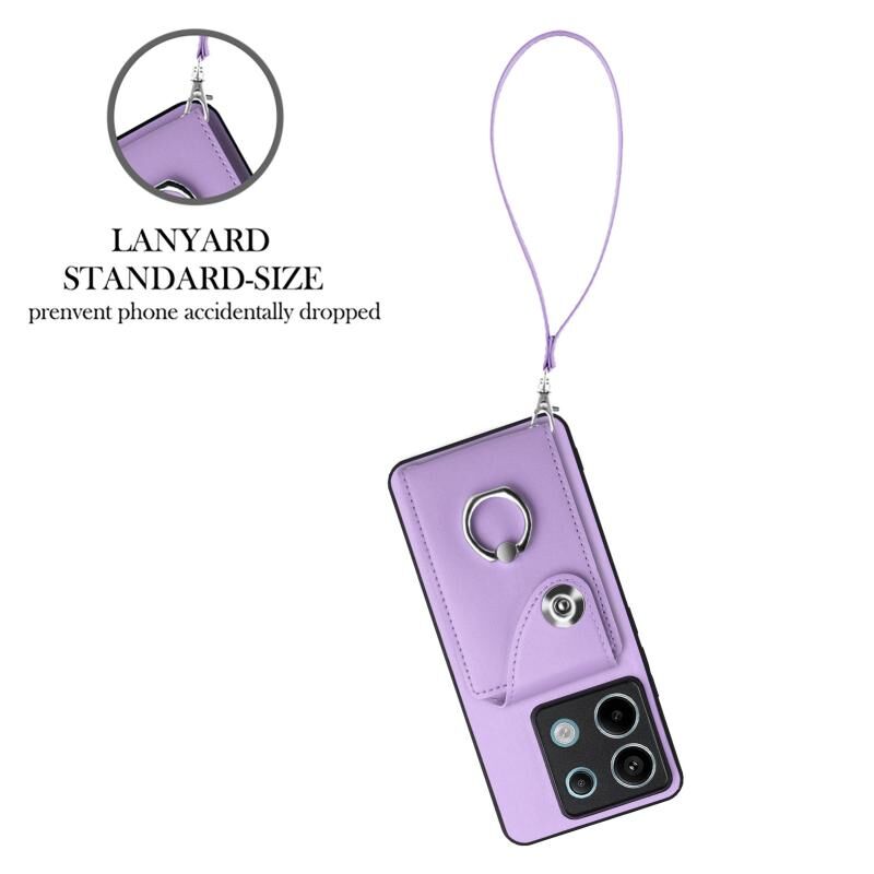 Για Xiaomi Redmi Σημείωση 13 Pro 5G Παγκόσμια Οργανική κάρτα τσάντα τσάντα δαχτυλίδι κάτοχος PU υπόθεση τηλεφώνου με κορδόνι (μωβ)