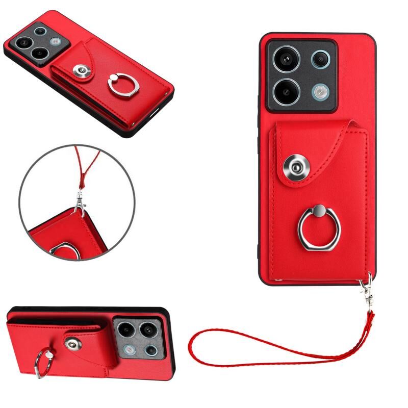 Για Xiaomi Redmi Σημείωση 13 Pro 5G Παγκόσμια Οργάνων κάρτα τσάντα δαχτυλίδι κάτοχος PU τηλέφωνο υπόθεση με κορδόνι (κόκκινο)