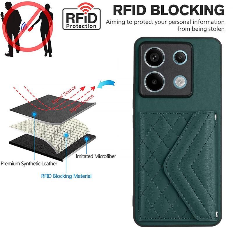 Για Xiaomi Redmi Σημείωση 13 Pro 5G Παγκόσμια Rhombic υφή κάρτα τσάντα RFID υπόθεση τηλεφώνου (Πράσινο)
