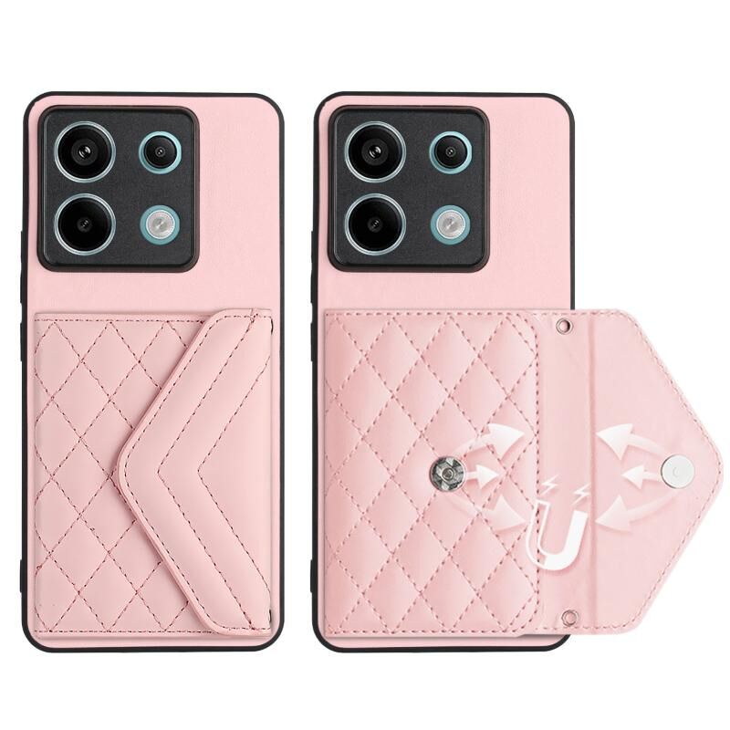 Για Xiaomi Redmi Σημείωση 13 Pro 5G Παγκόσμια Rhombic υφή κάρτα τσάντα RFID υπόθεση τηλεφώνου (Rose Gold)