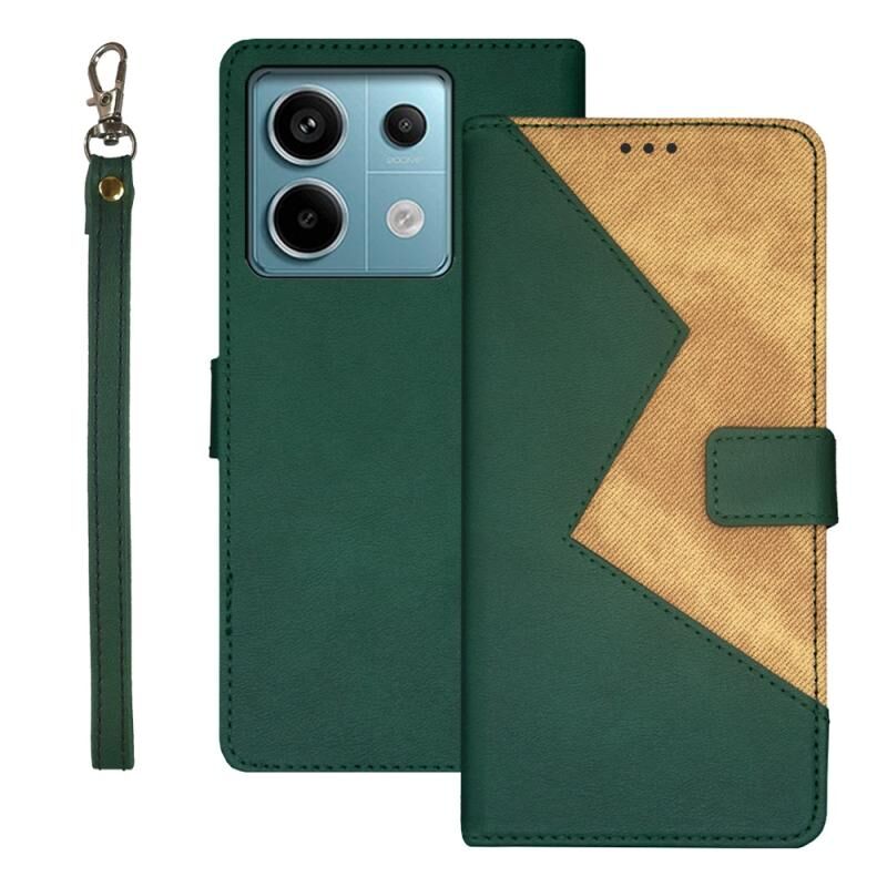 Για Xiaomi Redmi Note 13 Pro 5G idewei Δερμάτινη Θήκη Τηλεφώνου Διχρωμίας (Μπλε) (πράσινο)
