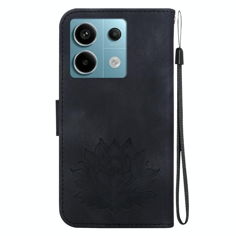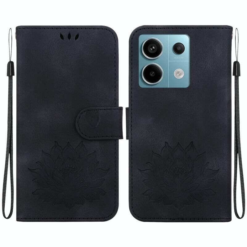 Για Xiaomi Redmi Note 13 Pro 5G Lotus ανάγλυφη δερμάτινη θήκη τηλεφώνου (μαύρο)