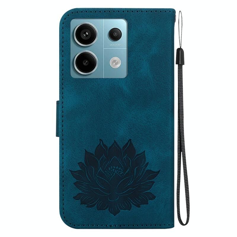 Για Xiaomi Redmi Note 13 Pro 5G Lotus ανάγλυφη δερμάτινη θήκη τηλεφώνου (σκούρο μπλε)