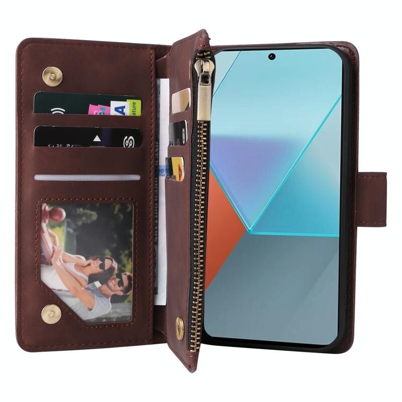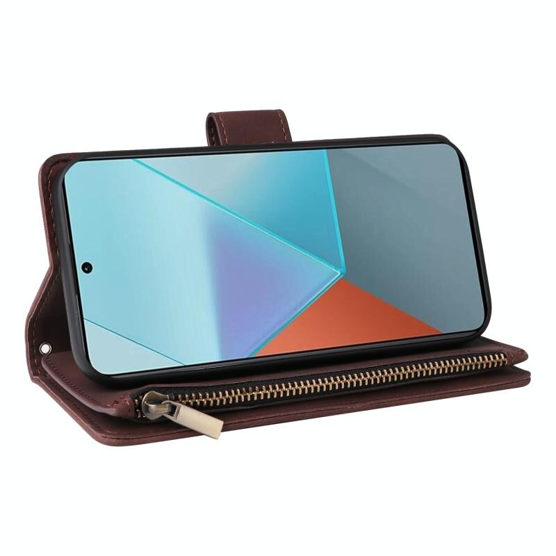 Για Xiaomi Redmi Note 13 Pro 5G Πολυλειτουργικό παγωμένο φερμουάρ πορτοφόλι δερμάτινη θήκη τηλεφώνου (Καφέ)