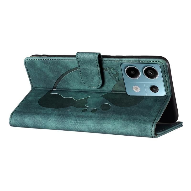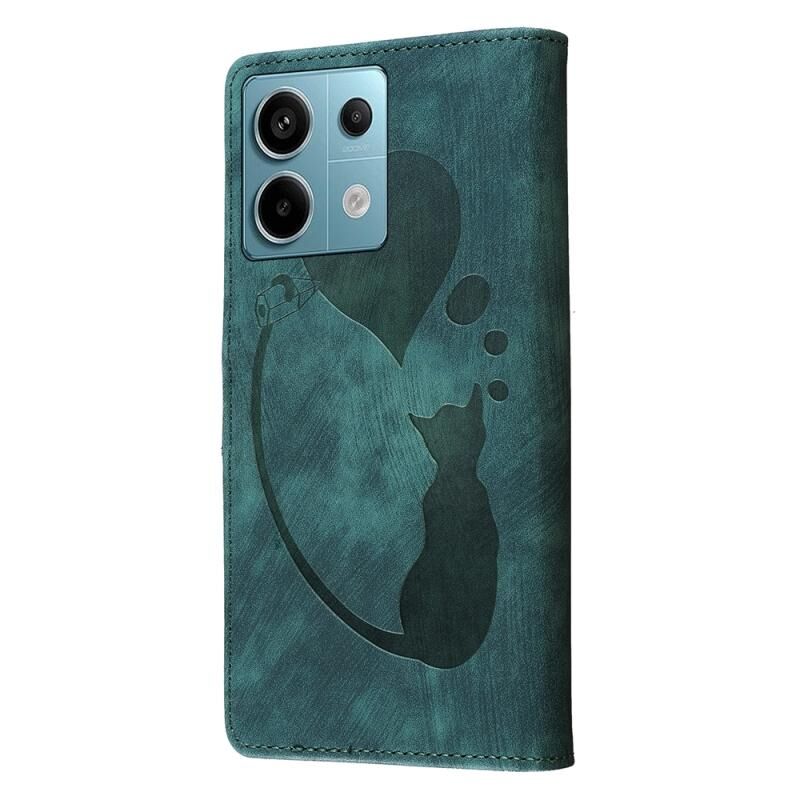Θήκη τηλεφώνου από δέρμα με ανάγλυφο σχέδιο καρδιάς και γάτας για Xiaomi Redmi Note 13 Pro 5G (Πορτοκαλί)