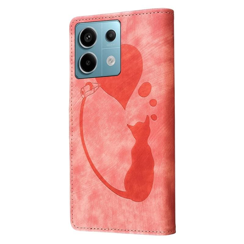 Θήκη τηλεφώνου από δέρμα με ανάγλυφο σχέδιο καρδιάς και γάτας για Xiaomi Redmi Note 13 Pro 5G (Πορτοκαλί)