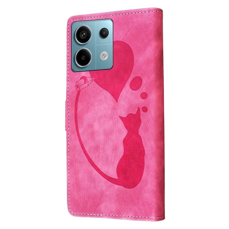 Θήκη τηλεφώνου από δέρμα με ανάγλυφο σχέδιο καρδιάς και γάτας για Xiaomi Redmi Note 13 Pro 5G (Πορτοκαλί)