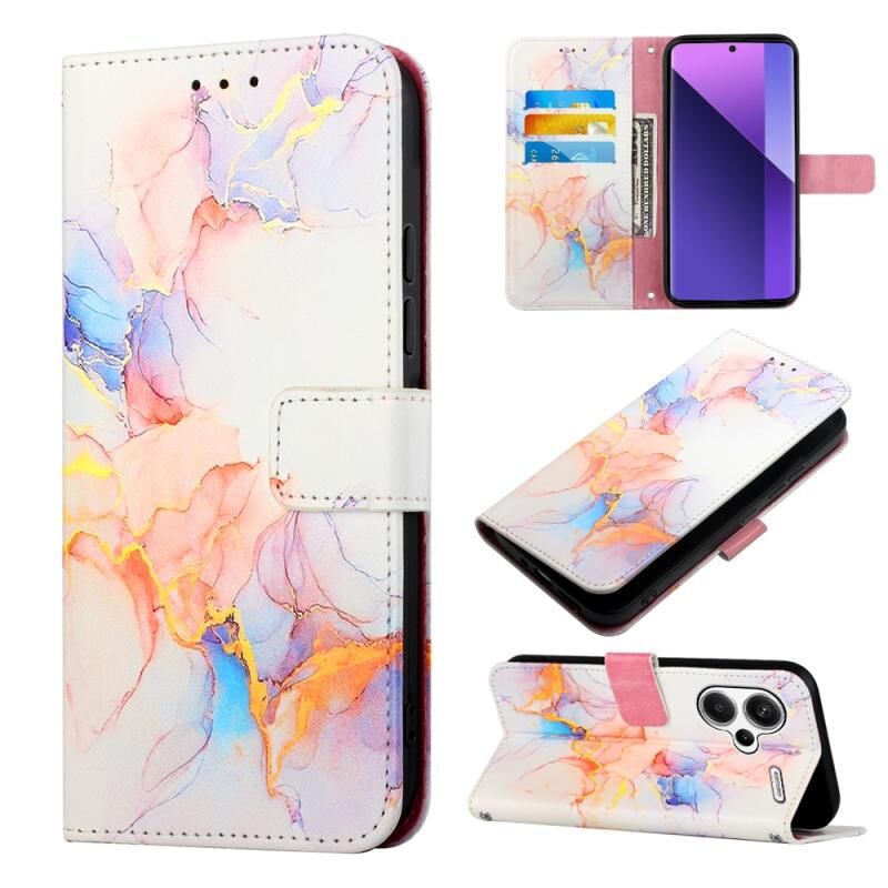 Θήκη τηλεφώνου από δέρμα με σχέδιο μαρμάρου για Xiaomi Redmi Note 13 Pro+ 5G PT003 (Ροζ Μωβ Χρυσό)