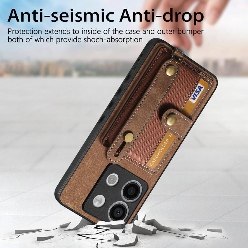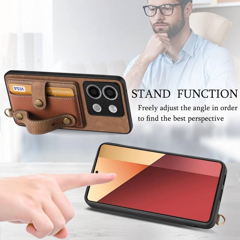 Για Xiaomi Redmi Note 13 Pro 5G Ρετρό σταυρό Wristband πορτοφόλι δέρμα πίσω τηλέφωνο υπόθεση (καφέ)