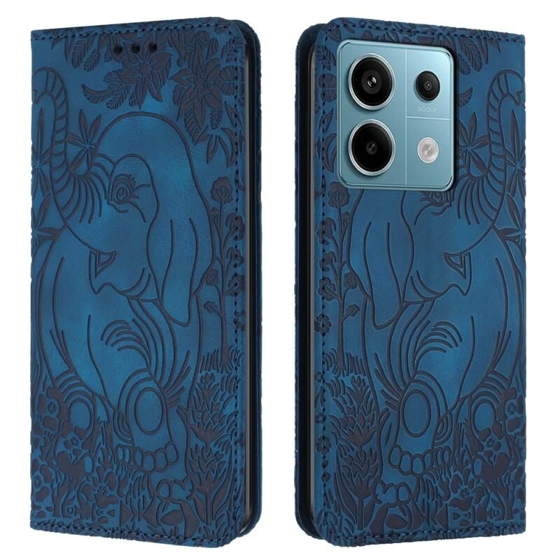 Θήκη τηλεφώνου από δέρμα με ανάγλυφο σχέδιο ρετρό ελέφαντα για Xiaomi Redmi Note 13 Pro 5G (Μπλε)