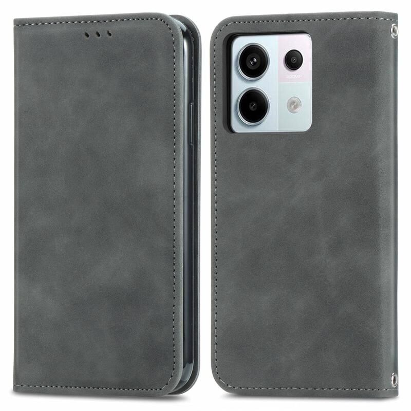 Για Xiaomi Redmi Note 13 Pro 5G Ρετρό δέρμα αίσθηση μαγνητική Flip δέρμα τηλέφωνο υπόθεση (γκρι)