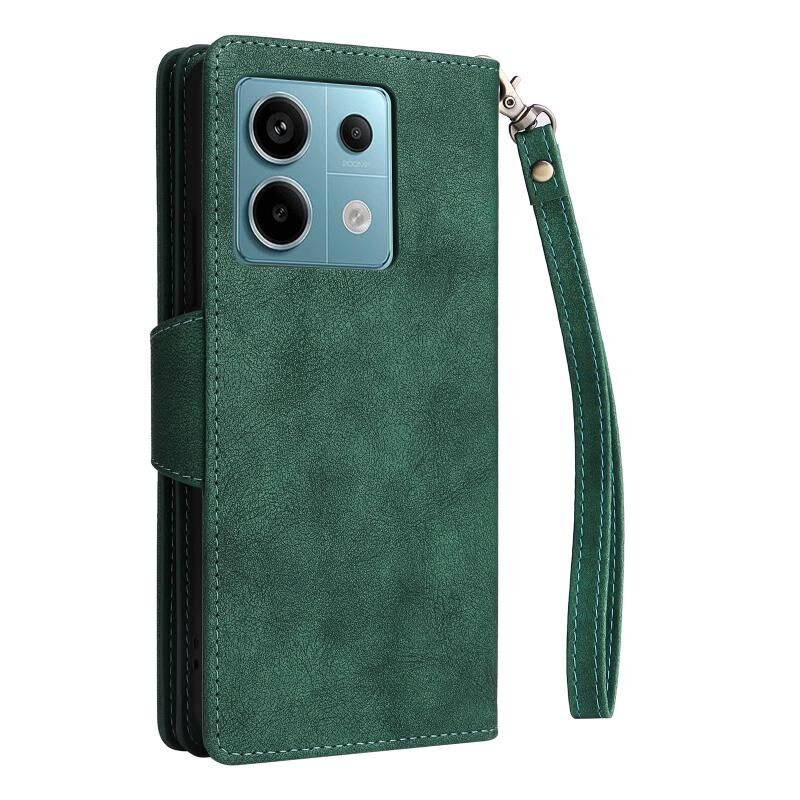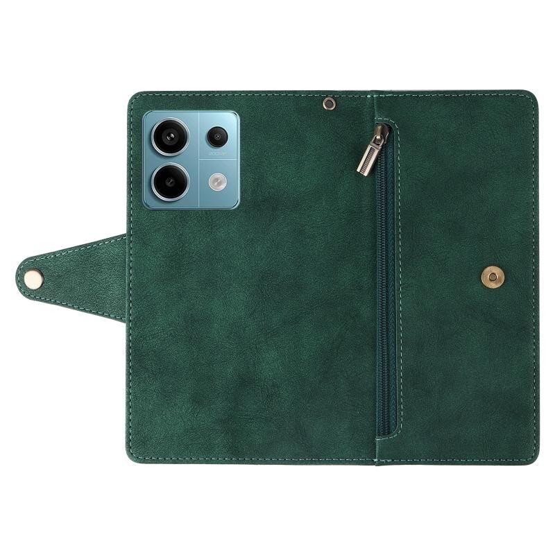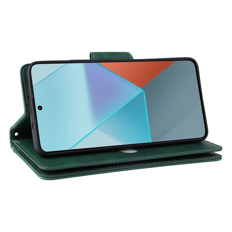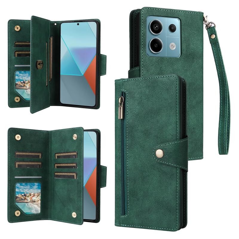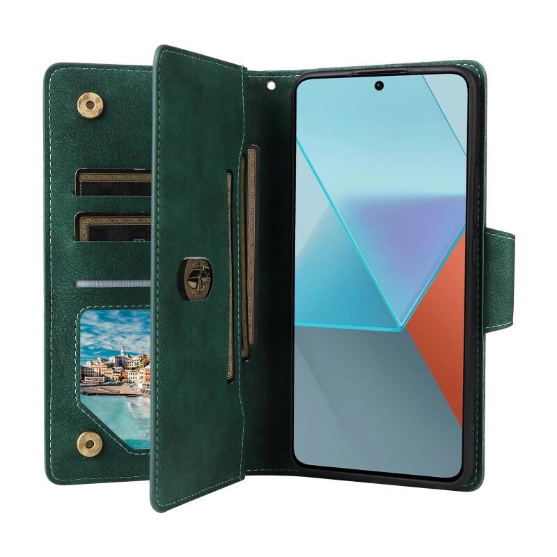 Για Xiaomi Redmi Note 13 Pro 5G Rivet πόρπη 9 κάρτες τρεις φορές δερμάτινη θήκη τηλεφώνου (πράσινο)