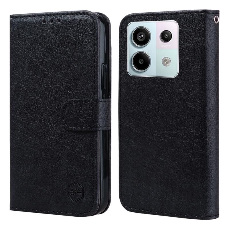 Θήκη κινητού τηλεφώνου Xiaomi Redmi Note 13 Pro 5G, υφή δέρματος λαδιού PU + TPU (Μαύρο)