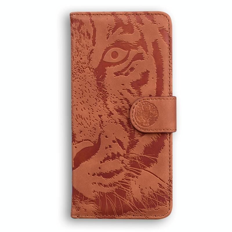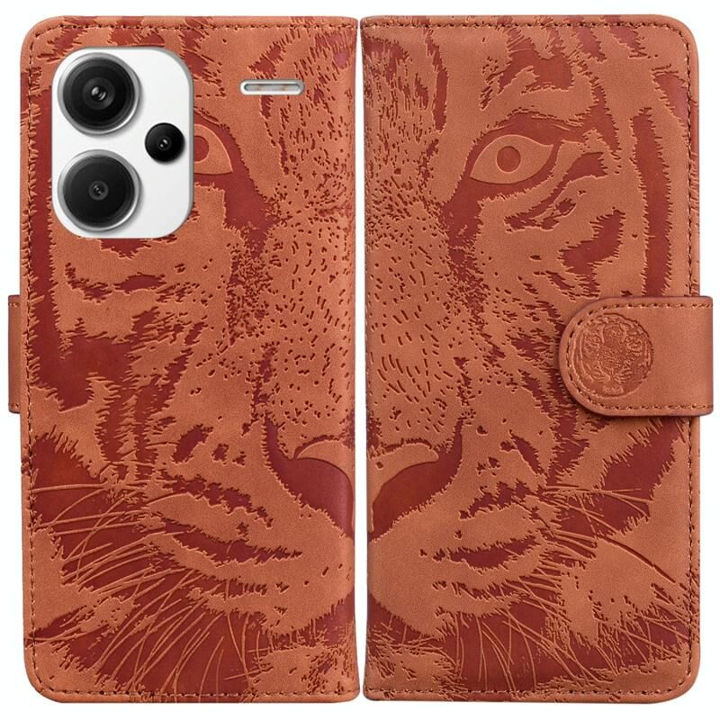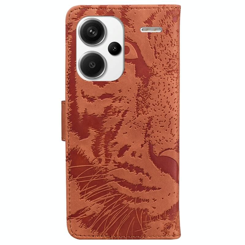 Θήκη δερμάτινη με ανάγλυφο σχέδιο τίγρης για Xiaomi Redmi Note 13 Pro+ 5G (Καφέ)