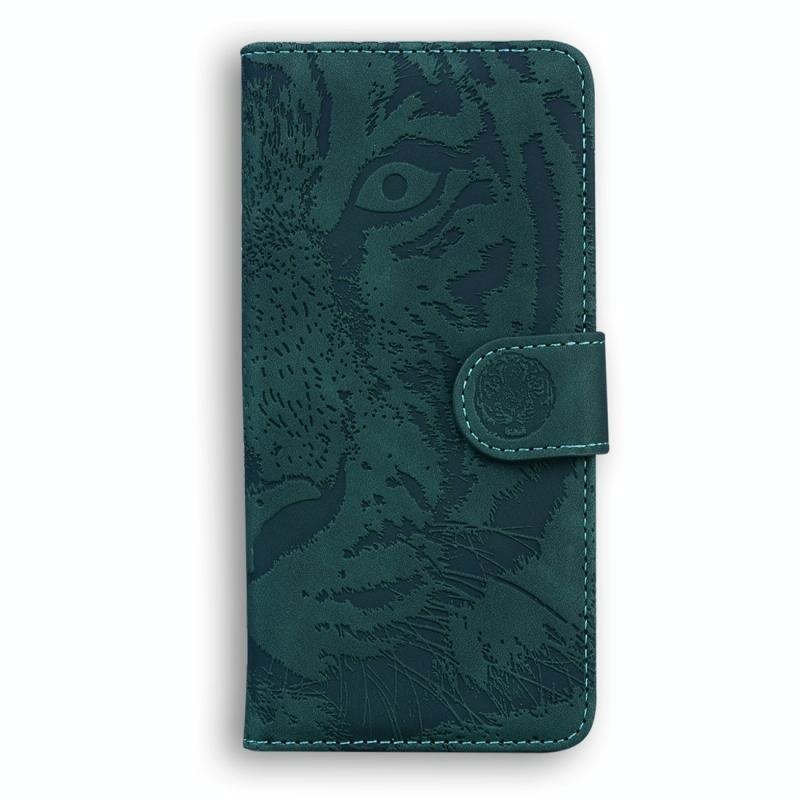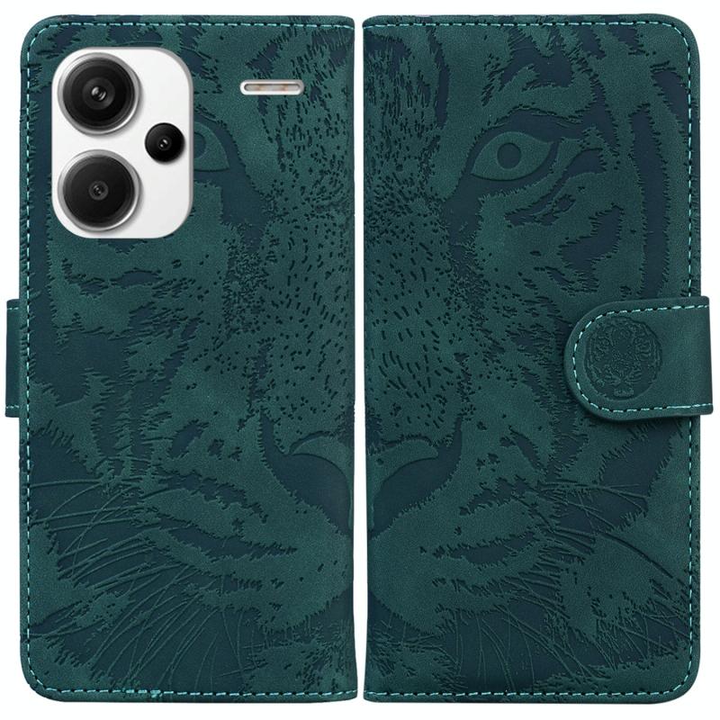 Θήκη δερμάτινη με ανάγλυφο σχέδιο τίγρης για Xiaomi Redmi Note 13 Pro+ 5G (Πράσινο)
