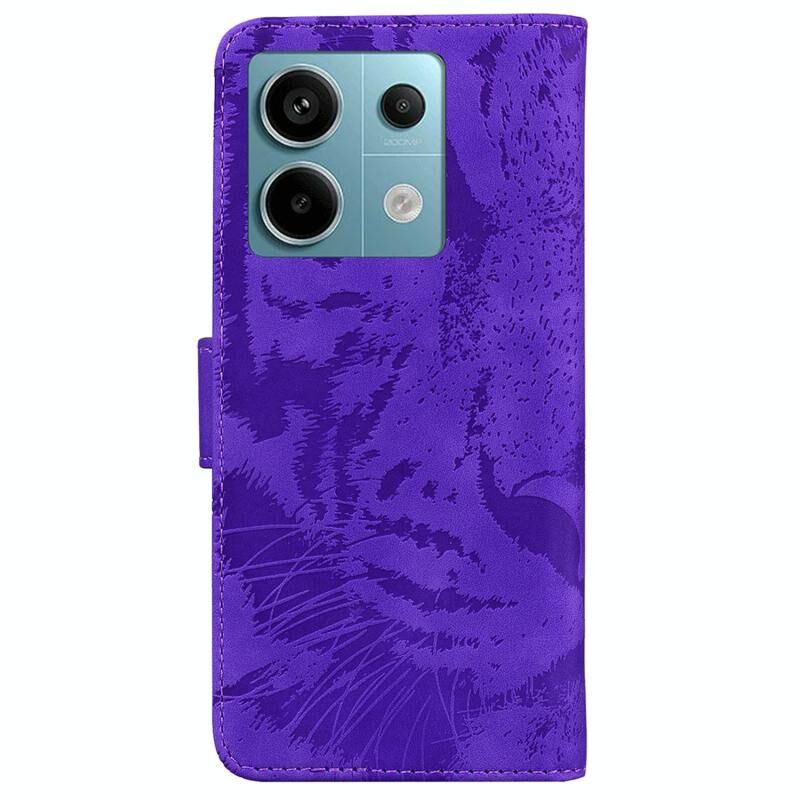 Θήκη δερμάτινη με ανάγλυφο τίγρη για Xiaomi Redmi Note 13 Pro 5G (Μωβ)