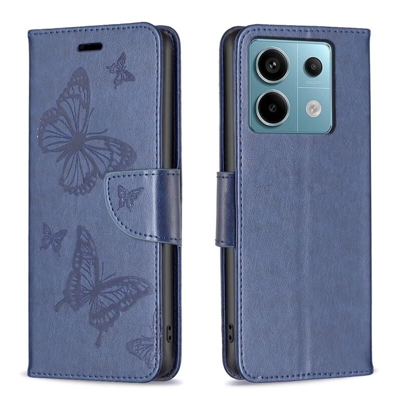 Θήκη τηλεφώνου από δέρμα με ανάγλυφο σχέδιο δύο πεταλούδων για Xiaomi Redmi Note 13 Pro 5G (Κόκκινο Ρόδι)