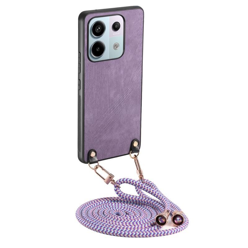 Για Xiaomi Redmi Note 13 Pro 5G Vintage δέρμα PC πίσω κάλυψη τηλέφωνο υπόθεση με λουράκι σταυρού (μωβ)