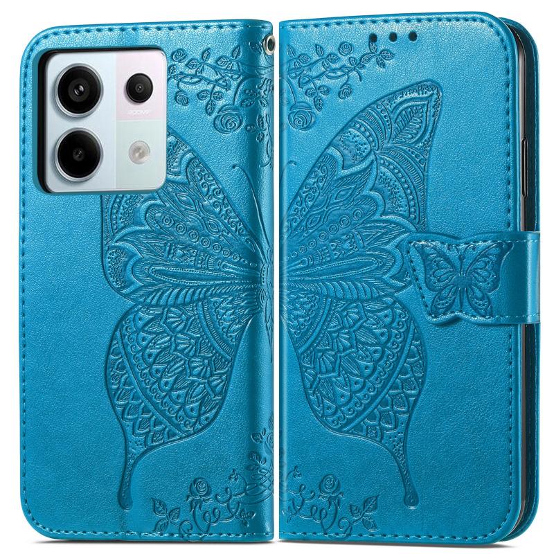 Θήκη τηλεφώνου από δέρμα με ανάγλυφο σχέδιο πεταλούδας και λουλουδιών για Xiaomi Redmi Note 13 Pro (Μπλε)