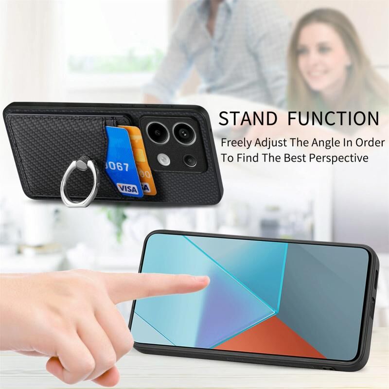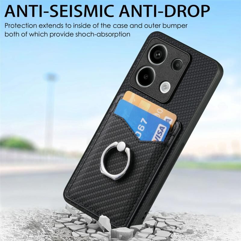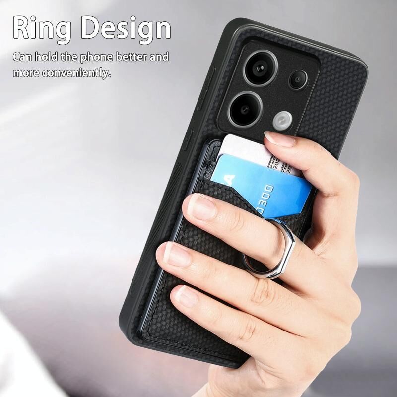 Για Xiaomi Redmi Σημείωση 13 Pro + Carbon Fiber κάρτα πορτοφόλι δαχτυλίδι κάτοχος θήκη τηλεφώνου (μαύρο)