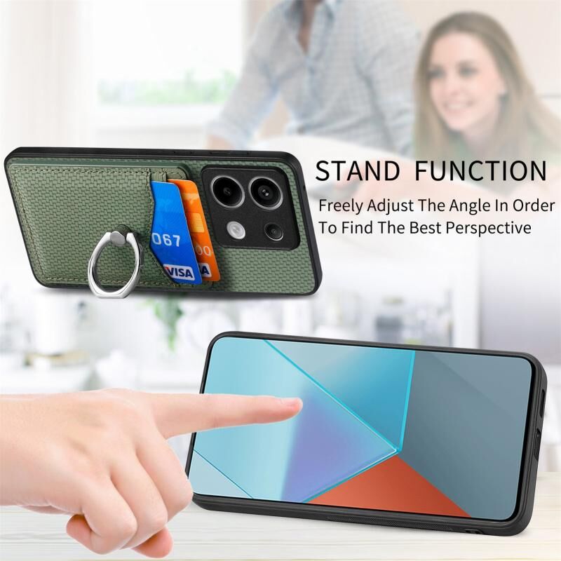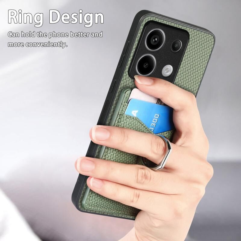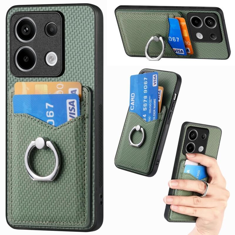 Για Xiaomi Redmi Σημείωση 13 Pro + Carbon Fiber κάρτα πορτοφόλι δαχτυλίδι κάτοχος θήκη τηλεφώνου (πράσινο)