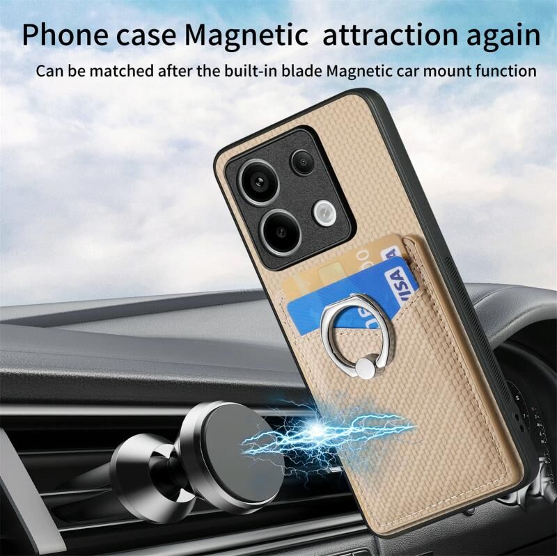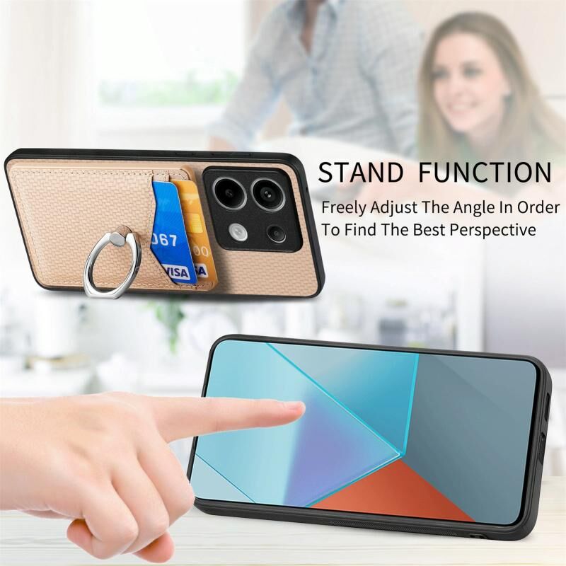 Για Xiaomi Redmi Σημείωση 13 Pro Carbon Fiber κάρτα πορτοφόλι δαχτυλίδι κάτοχος τηλέφωνο υπόθεση (χακί)
