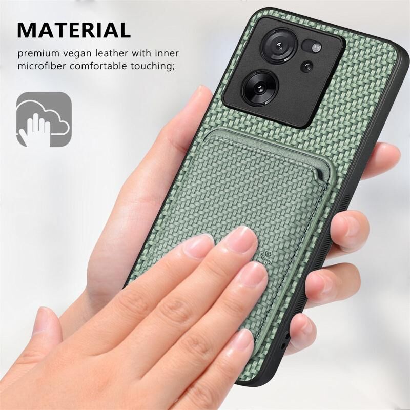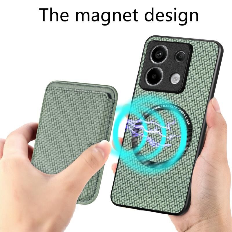 Για Xiaomi Redmi Note 13 Pro Carbon Fiber δέρμα κάρτα μαγνητική υπόθεση τηλεφώνου (πράσινο)