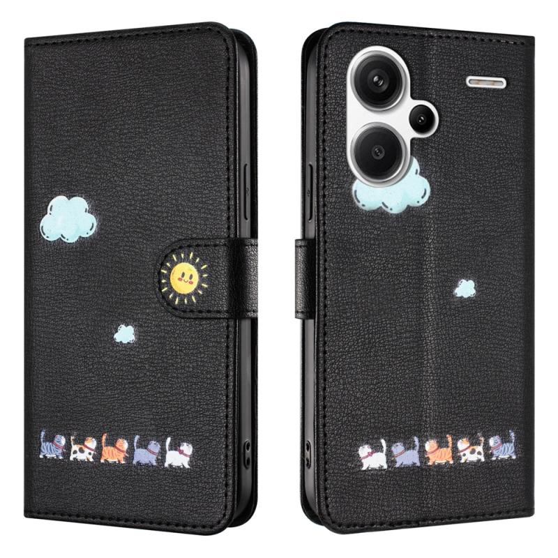For Xiaomi Redmi Note 13 Pro+ Cartoon Cats Leather Phone Case(Black)