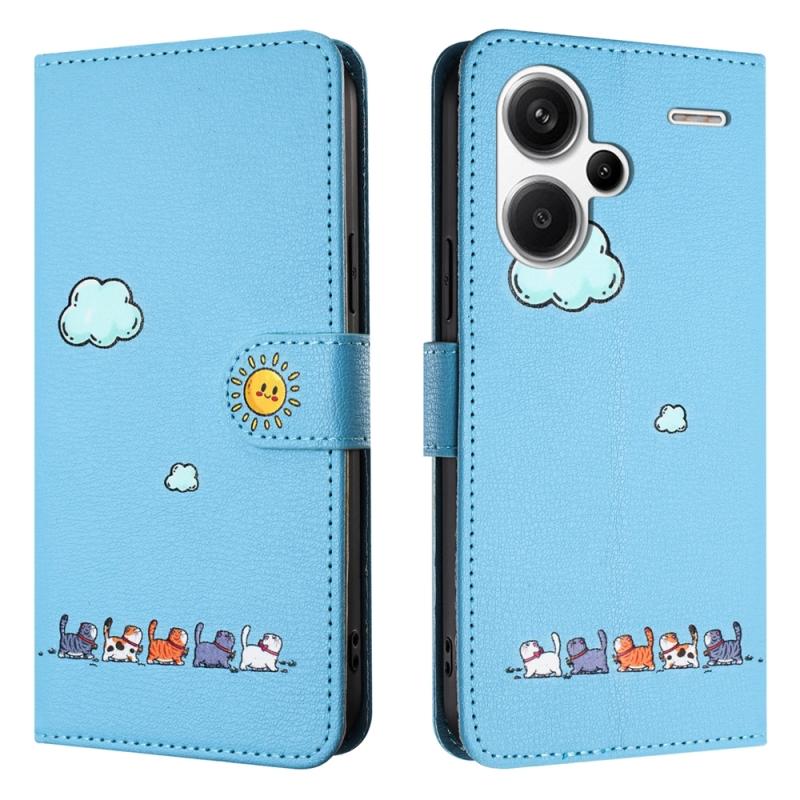 For Xiaomi Redmi Note 13 Pro+ Cartoon Cats Leather Phone Case(Blue)