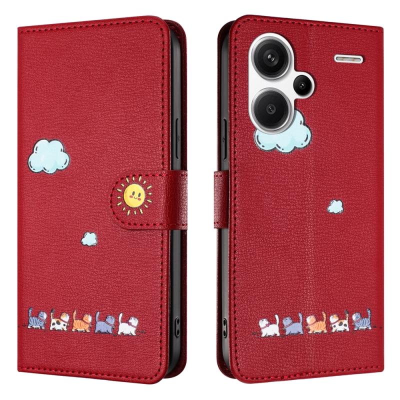For Xiaomi Redmi Note 13 Pro+ Cartoon Cats Leather Phone Case(Red)